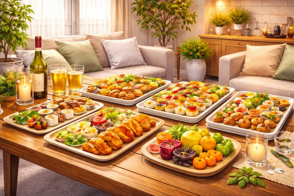 乾杯の瞬間に、全員がすぐ食べられるもの(個包装・フィンガーフード)を置く。