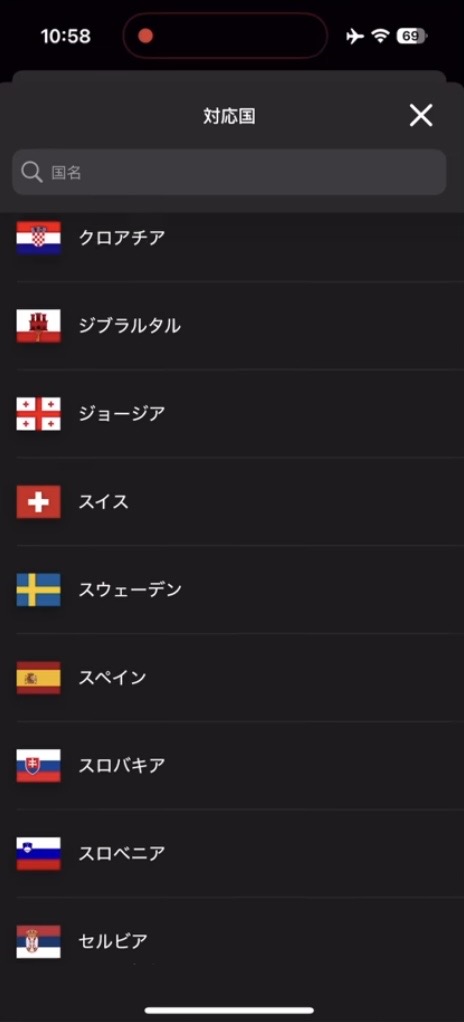 - 渡航先の国をタップ